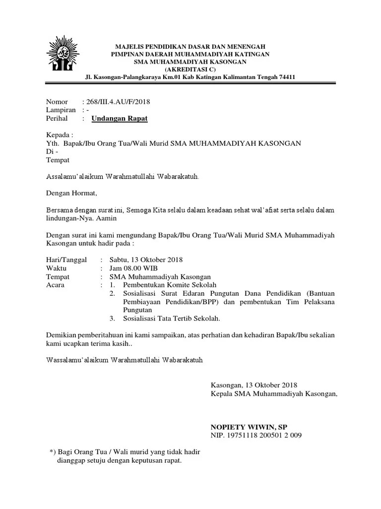 Pemerintah kabupaten garut dinas pendidikan sma negeri 4 garut jln. Di organisasi lah anda akan paham bagaimana bekerja sama dengan tim, bagaimana mengurus sebuah birokrasi, bagaimana menyusun. Agenda dalam suatu surat undangan biasanya juga dicantumkan agenda yang akan dibahas dalam rapat tersebut. Musyawarah penyusunan struktur organisasi sekolah hasil rapat 1. Surat yang satu ini bersifat resmi, sehingga akan ada nomor, lampiran, dan perihal yang menjelaskan maksud dari rapat kepada orang yang diundang untuk. Notulen rapat perusahaan merupakan dokumen penting untuk mencatat setiap hasil rapat yang diselenggarakan perusahaan. Pembicaraan tingkat pertama dilakukan dalam rapat komisi, rapat gabungan komisi, rapat badan legislasi, rapat badan anggaran. Kegiatan rapat di sekolah biasanya diselenggarakan beberapa waktu dalam satu tahun. Osis atau organisasi siswa intra sekolah merupakan salah satu organisasi yang terdapat di lingkungan sekolah baik smp pembentukan panitia pelaksana. Contoh surat undangan rapat osis. Organisasi siswa intra sekolah (osis) sman 1 jakarta jalan budi utomo no.7. Seperti seminar, diskusi, rapat, perkumpulan dan kegiatan lainnya. Jadi tidak hanya melulu dilakukan oleh suatu perusahaan.